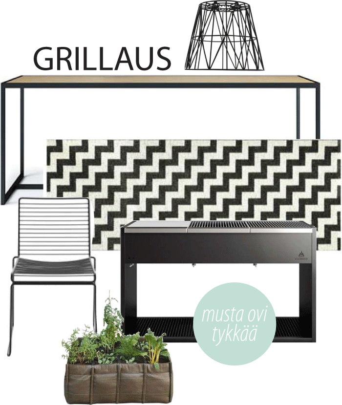 Vaikka varsinaisen terassin valmistumiseen vierähtää vielä hetki jos toinenkin, sininen taivas ja silmiä kirvelevä auringonpaiste saivat minut haaveilemaan hetkistä keväisellä terassilla. Oheisista kuvakollaaseista saa hieman tuntumaa, mitä olemme suunnitelleet betoniterassin päälle. Nämä suunnitelmat avaavat hieman ajatustamme sisustussuunnitelmasta, jossa kaiken skandinaavisen vaaleuden keskellä on ripaus tanskalaista rouheutta