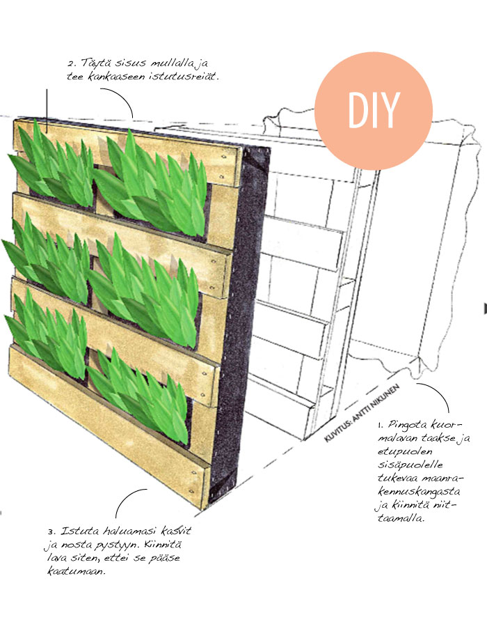 Parvekkeettomana ja pihattomana on yhtäkkiä kaikenlainen mullassa möyriminen alkanut yllättäen kiinnostaa. Mitäpähän naapuruston kukkahattutädit tuumaisivat, jos laittaisin keittiön ikkunan viereen nojailemaan oman kaupunkiviljelmäni? Taimia ei ehkä enää kerinne istuttamaan, mutta valmiimmat yksilöt viihtyvät varmasti kuormalavapuutarhassa?