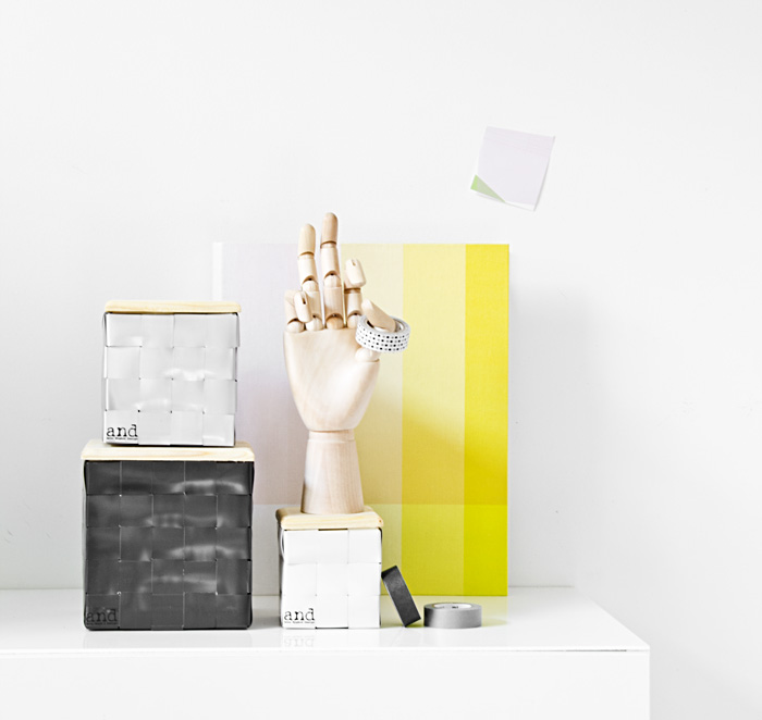Sain Anna Nygård Designilta* paketin, joka sisälsi kierrätetyistä sälekaihtimista valmistettuja pärekoreja**. Nyt nuo mainiot designkorit ovat saaneet päällensä kätevät puukannet ja ainakin meikätytön silmää miellyttää kovasti tuo metallin ja puun yhdistelmä. Samaan tuoteperheeseen kuuluu myös tarjottimia, laukkuja, lehtikoreja, voi- ja maitopaketin suojia sekä eri kokoisia ja värisiä koreja. Kaunista ja käytännöllistä.