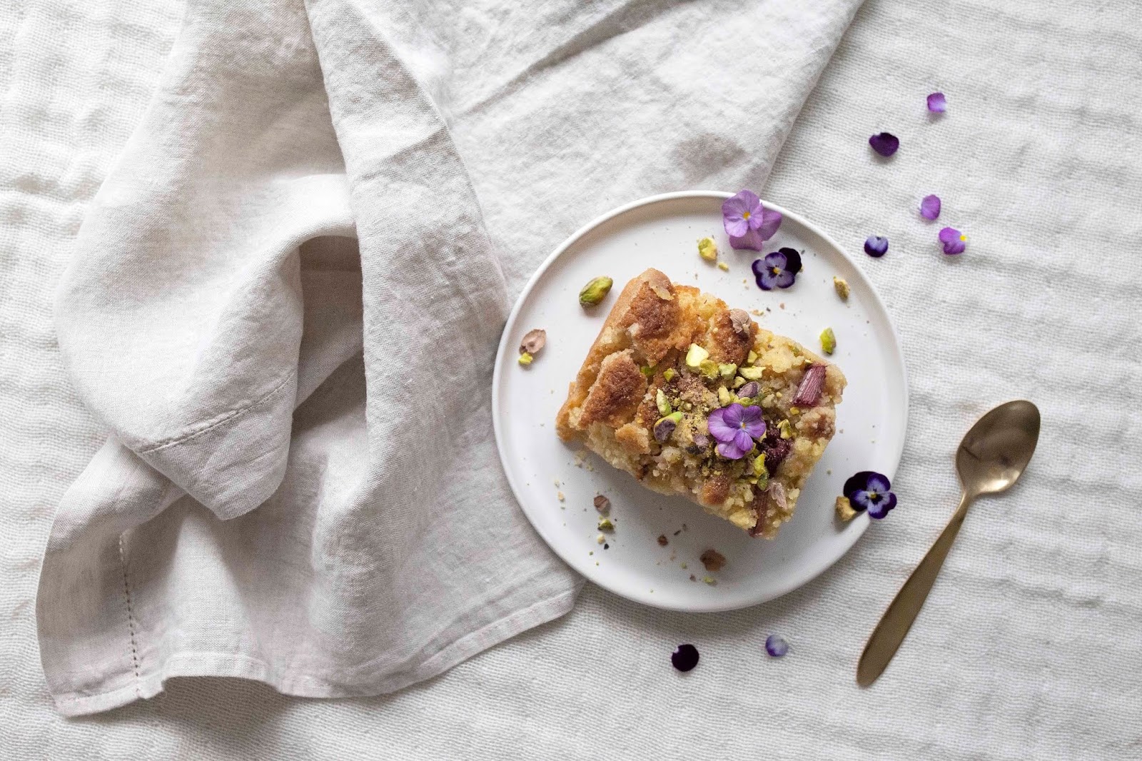 - Kun piirakka on kypsä, ripottele päälle rouhittuja pistaasipähkinöitä.